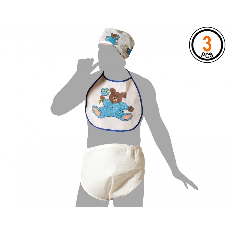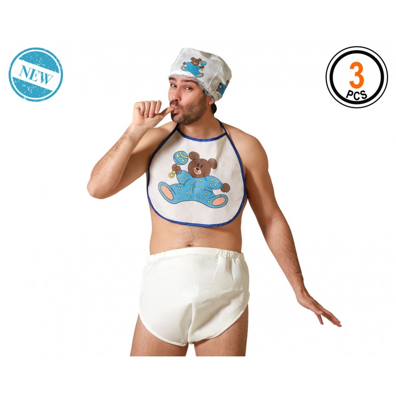 SET BEBE 3 PCS perfecto para tu fiesta o celebración CONTIENE: pañal babero y gorro
