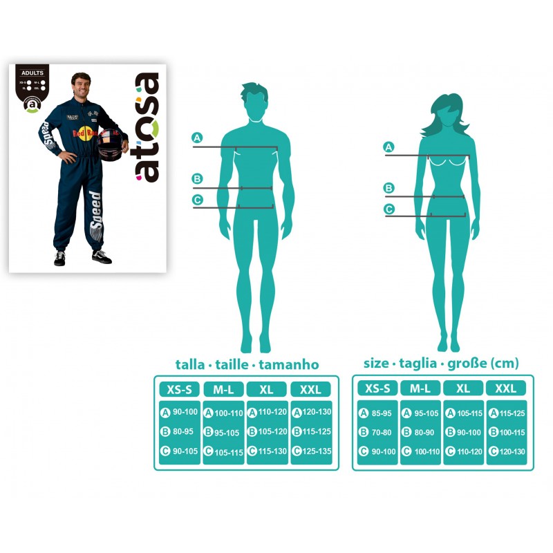 DISFRAZ PILOTO F1 AZUL perfecto para tu fiesta o celebración CONTIENE: mono. No incluye: casco.