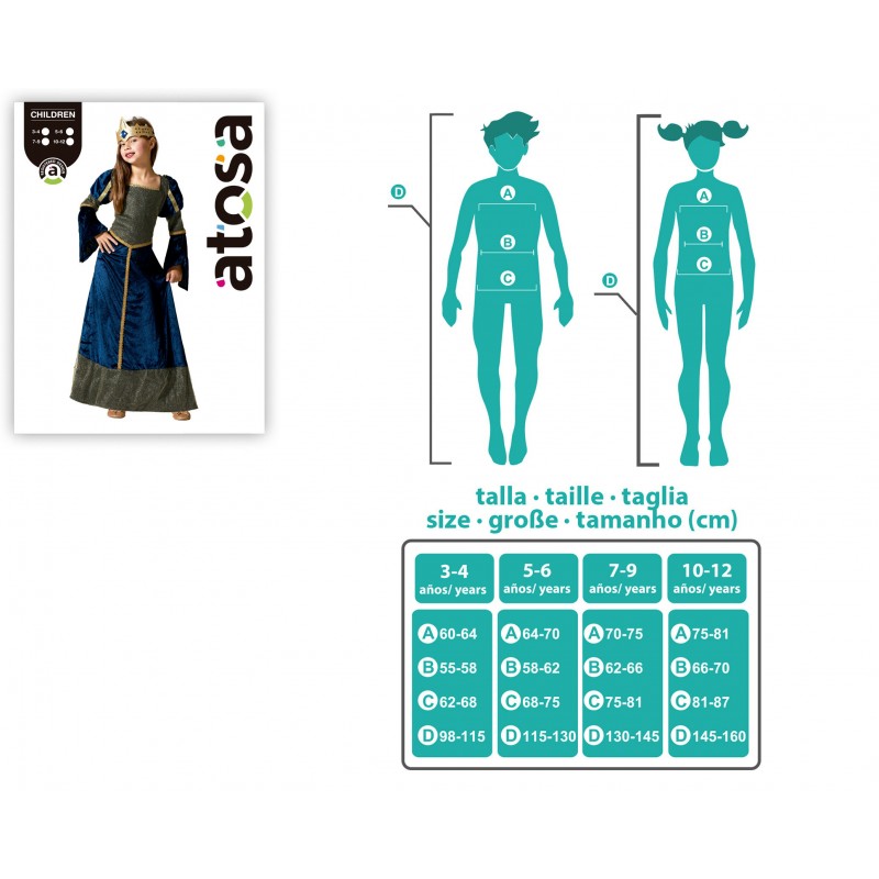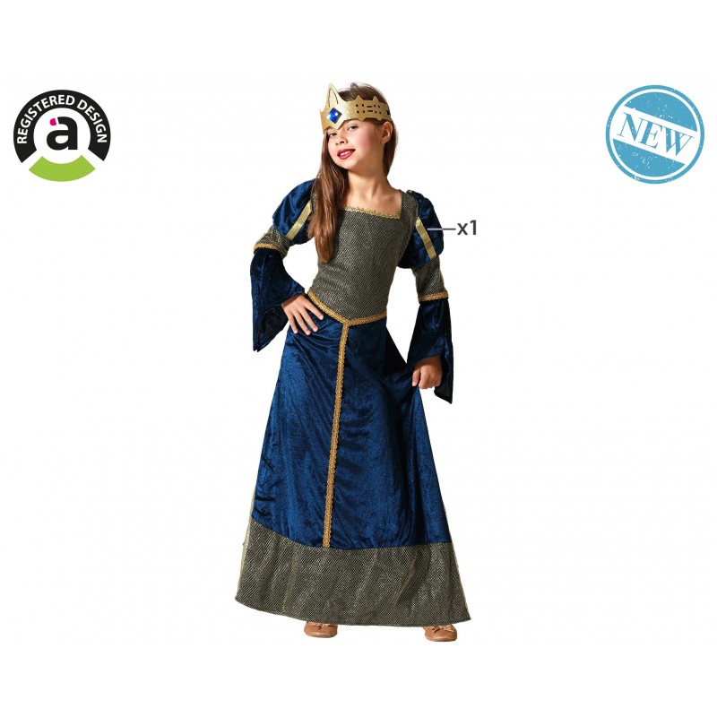 DISFRAZ DAMA MEDIEVAL AZUL INFANTIL perfecto para tu fiesta o celebración CONTIENE: vestido. No incluye: diadema.